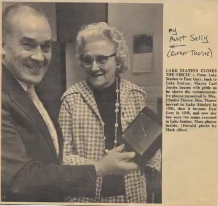 In 1977, she was instrumental in having the name East Gary changed back to its original name of Lake Station. (see picture below)